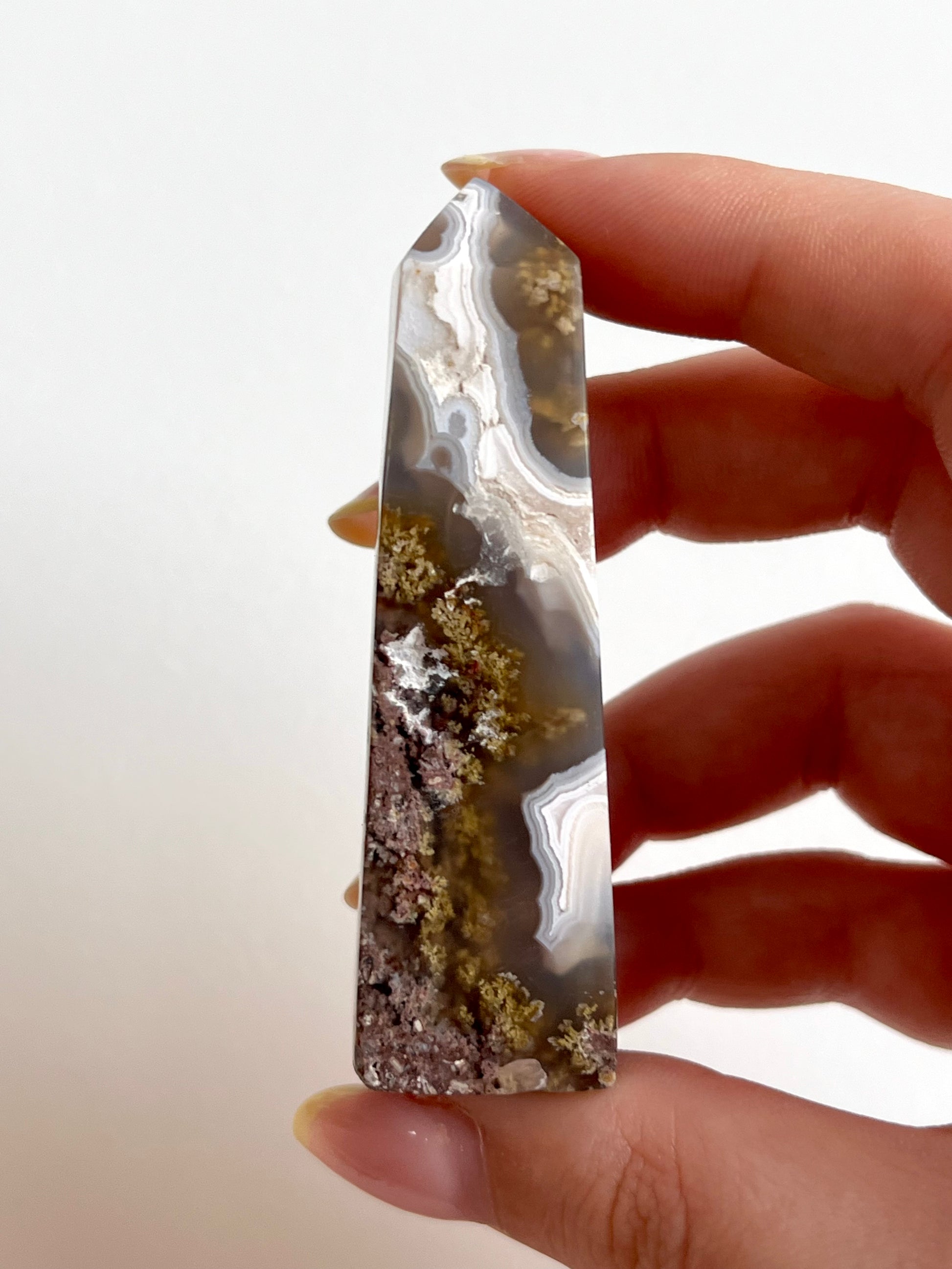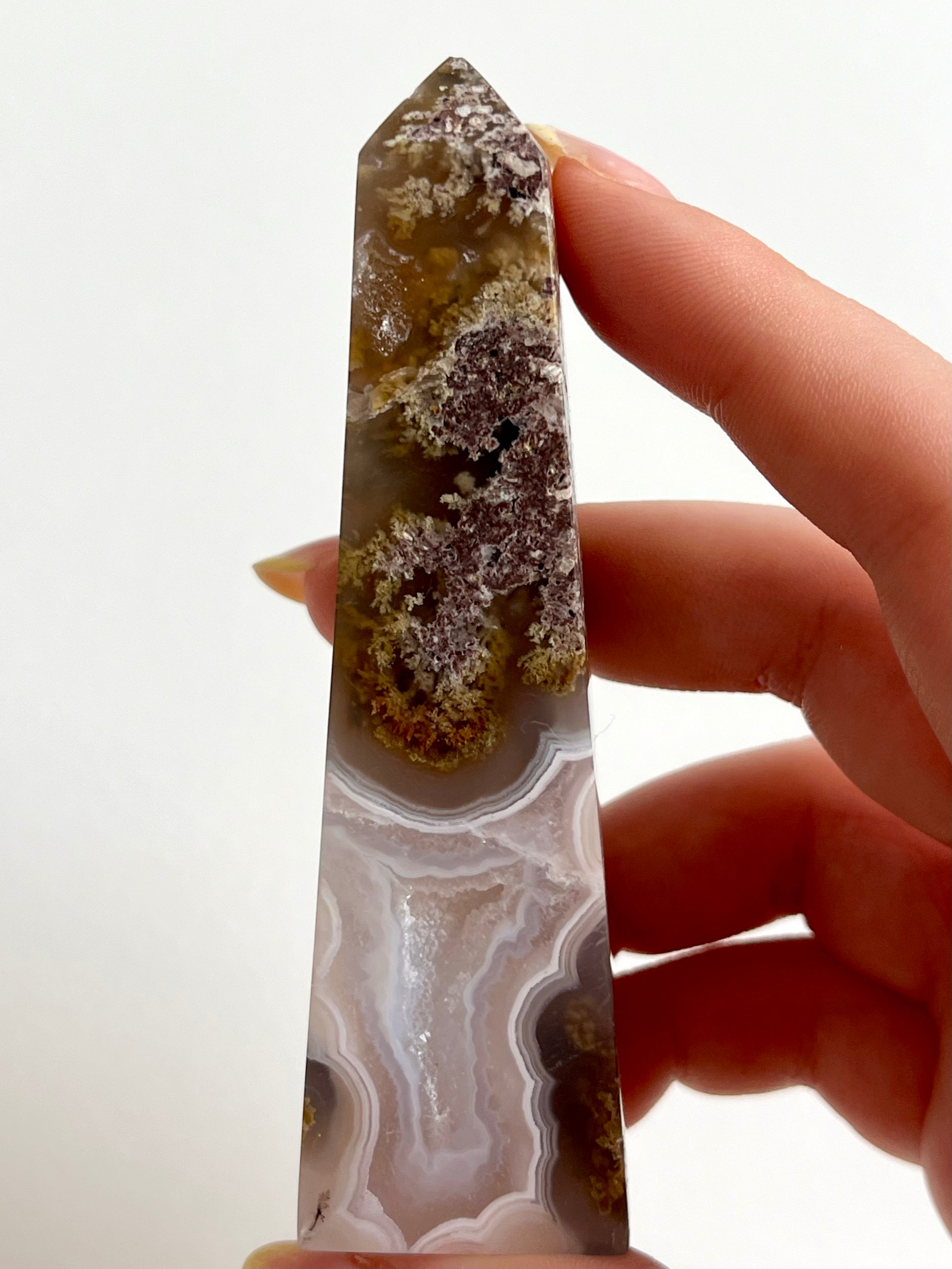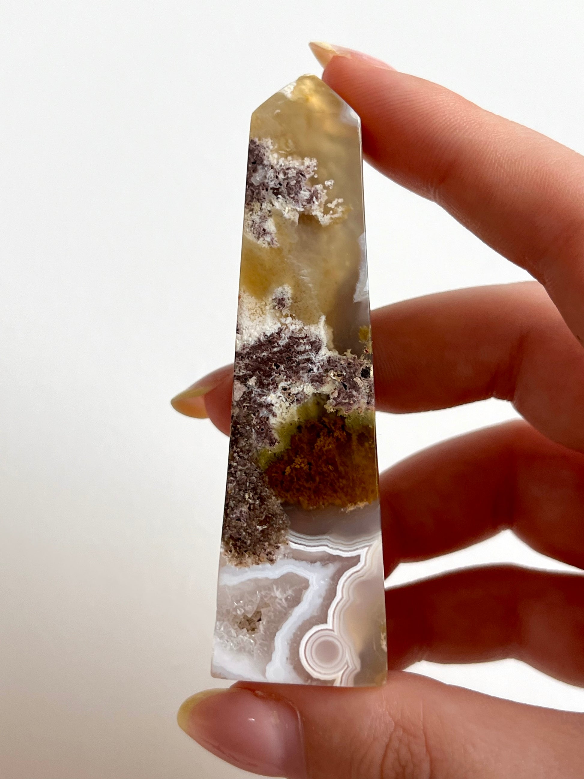 L'Agata Nebula è una pietra molto particolare proveniente dall’Indonesia. È Una tipologia di muschiata che presenta sfumature sui toni del rosso, del giallo e del viola ecc ma a differenza della classica muschiata ha anche altri dettagli. Ad esempio possiamo trovare delle bande che talvolta formano dettagli orbicolari, inclusioni dentritiche e del quarzo