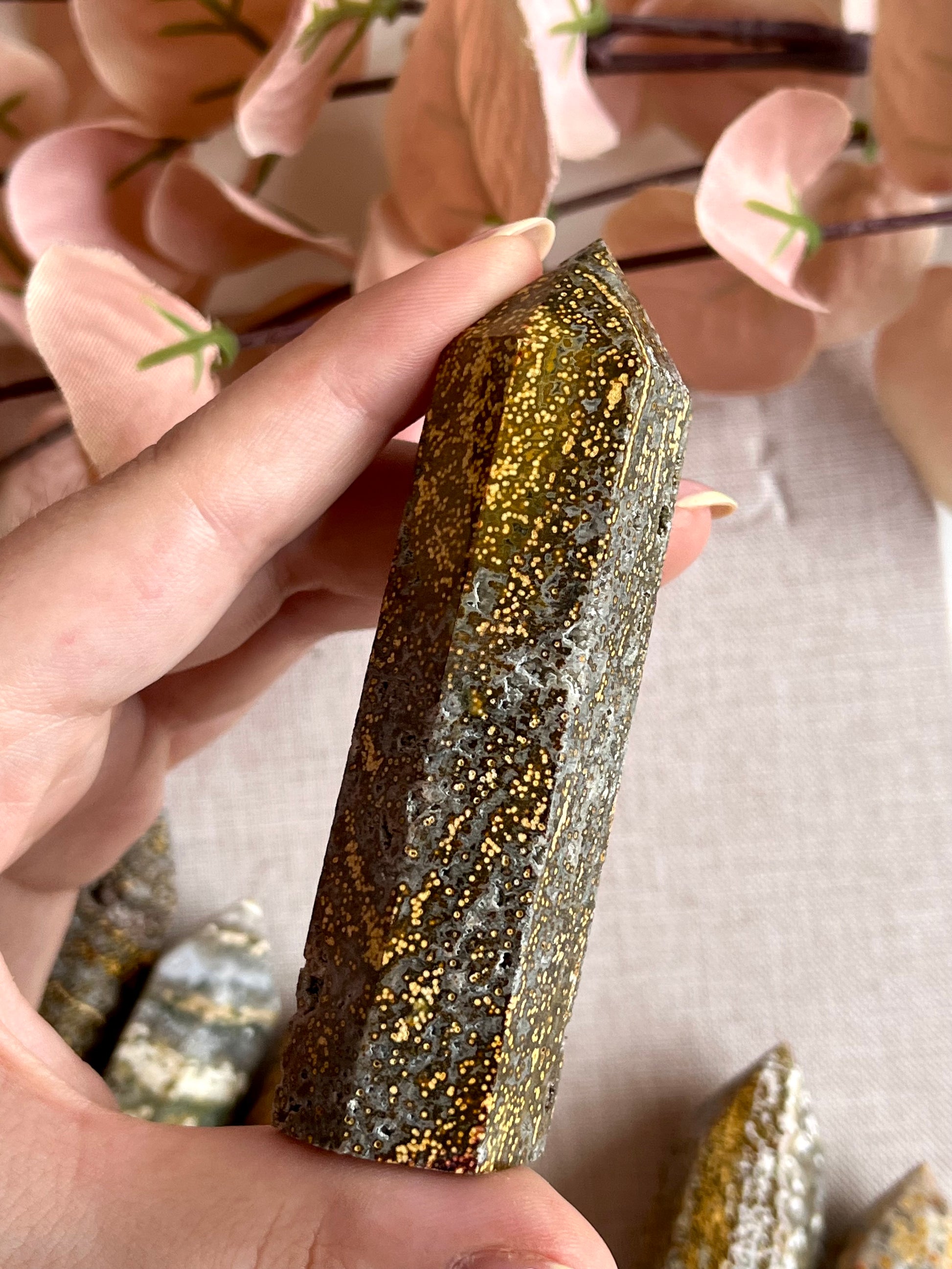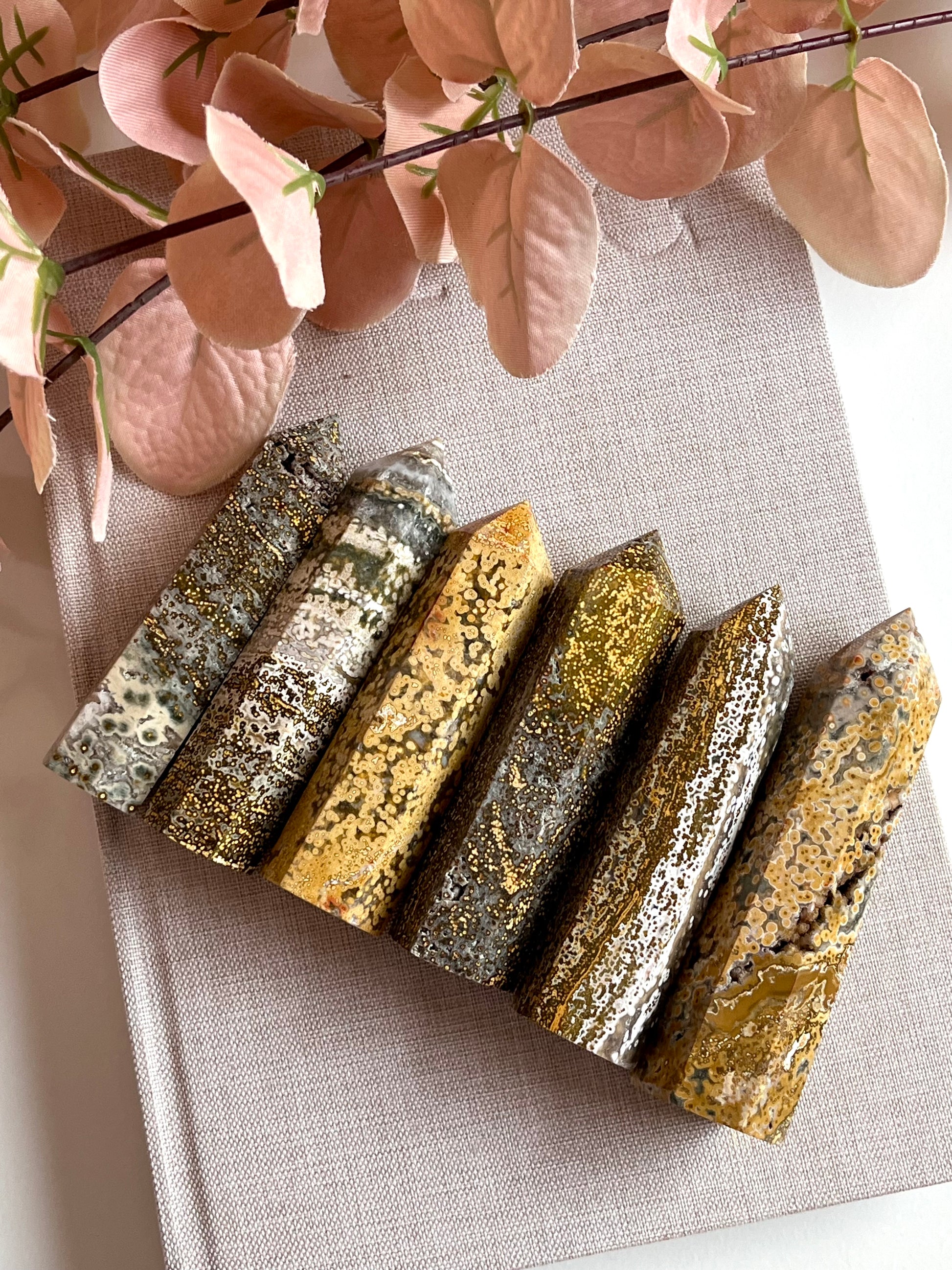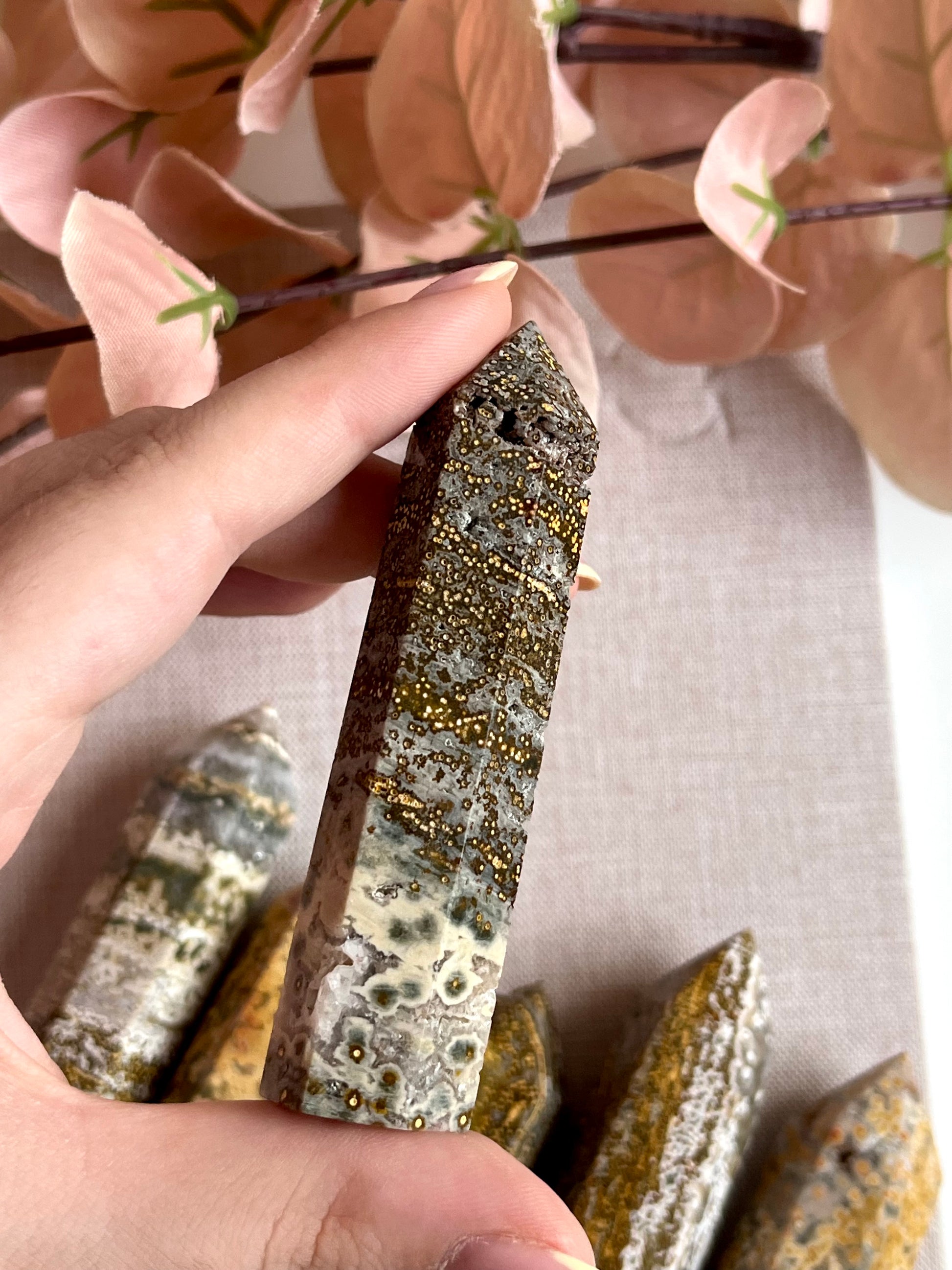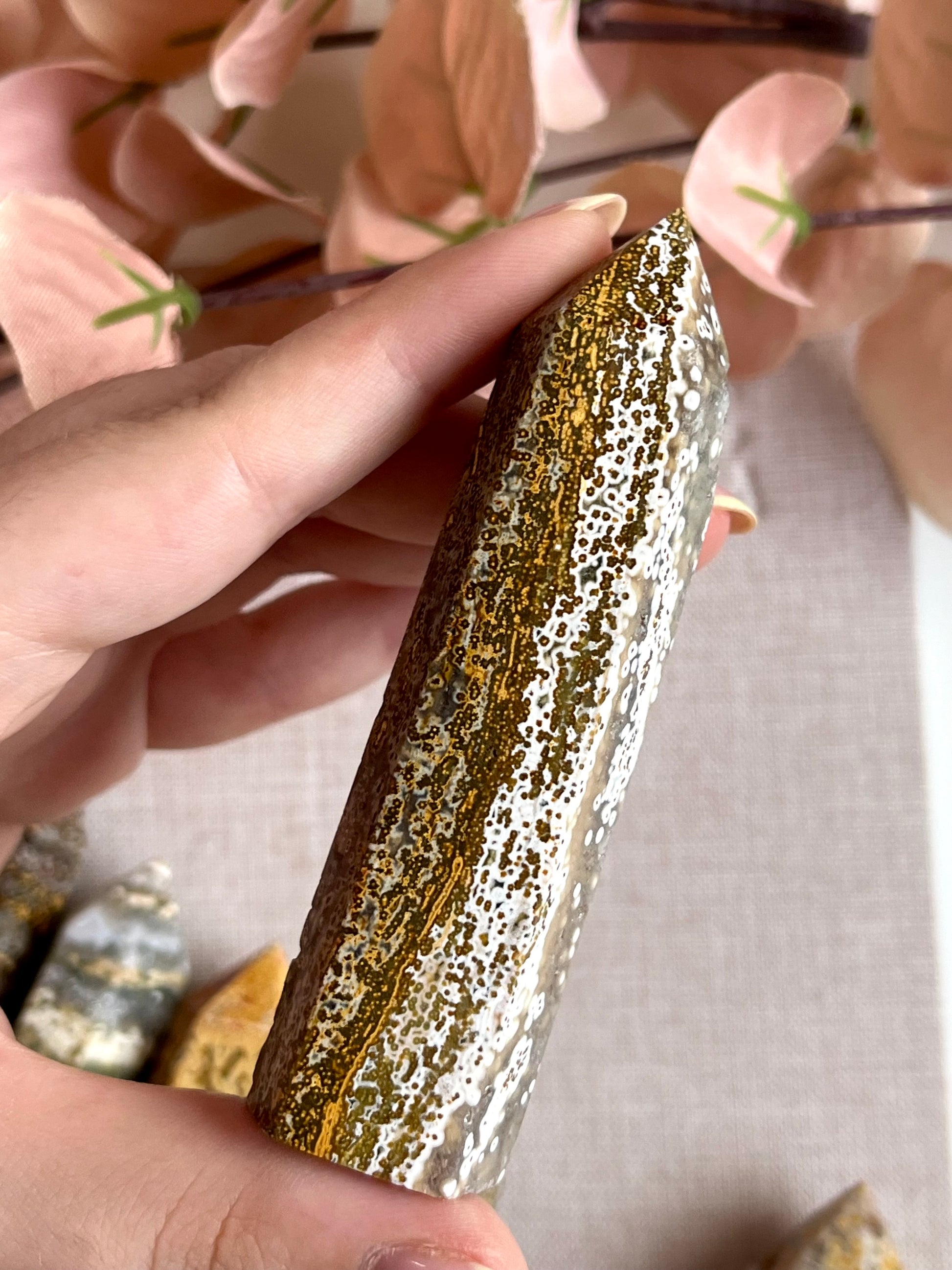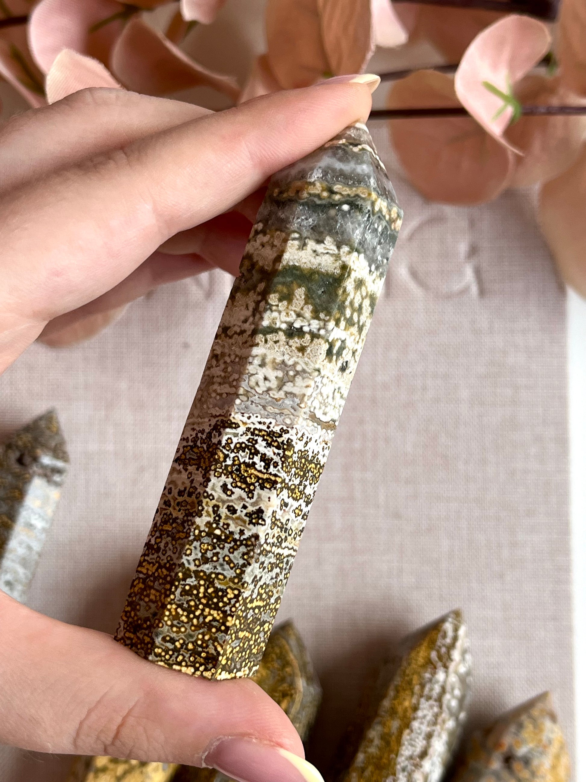 Il diaspro oceano è una pietra molto particolare per la varietà di pattern che presenta. Porta serenità alleviando lo stress e infonde ottimismo e sicurezza