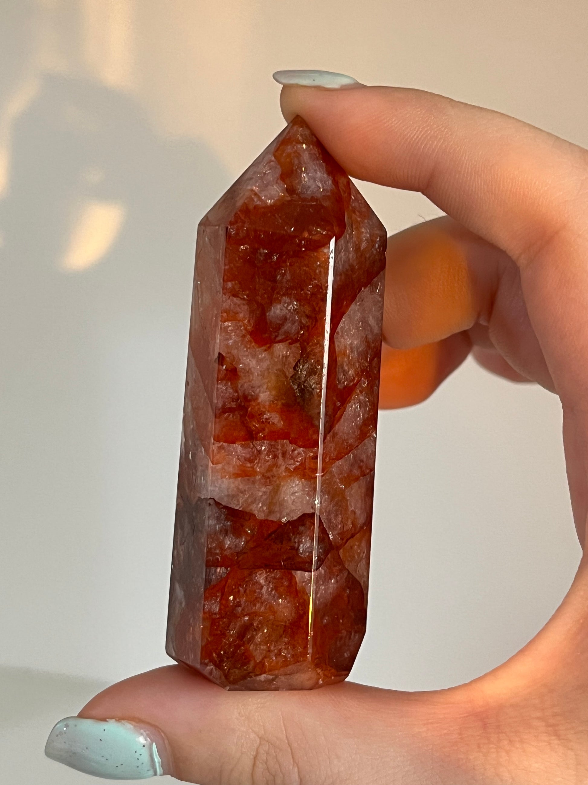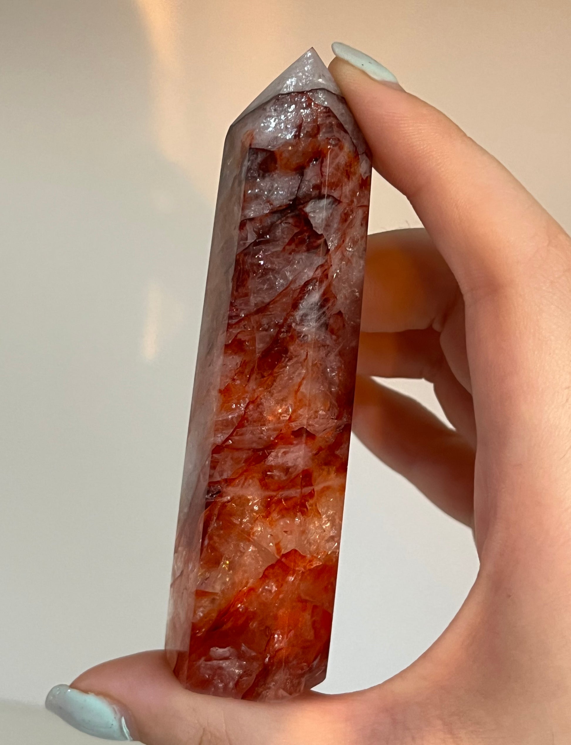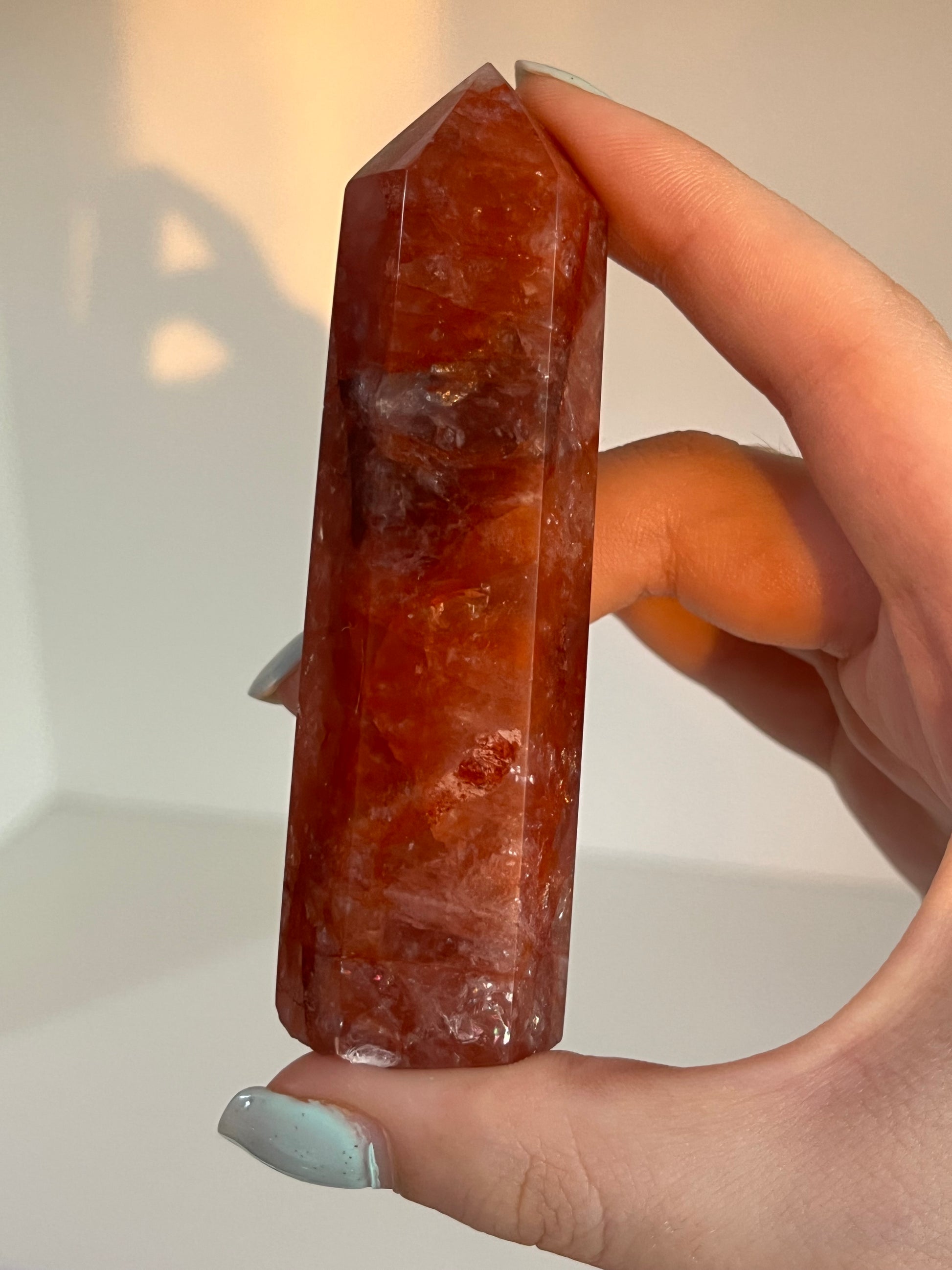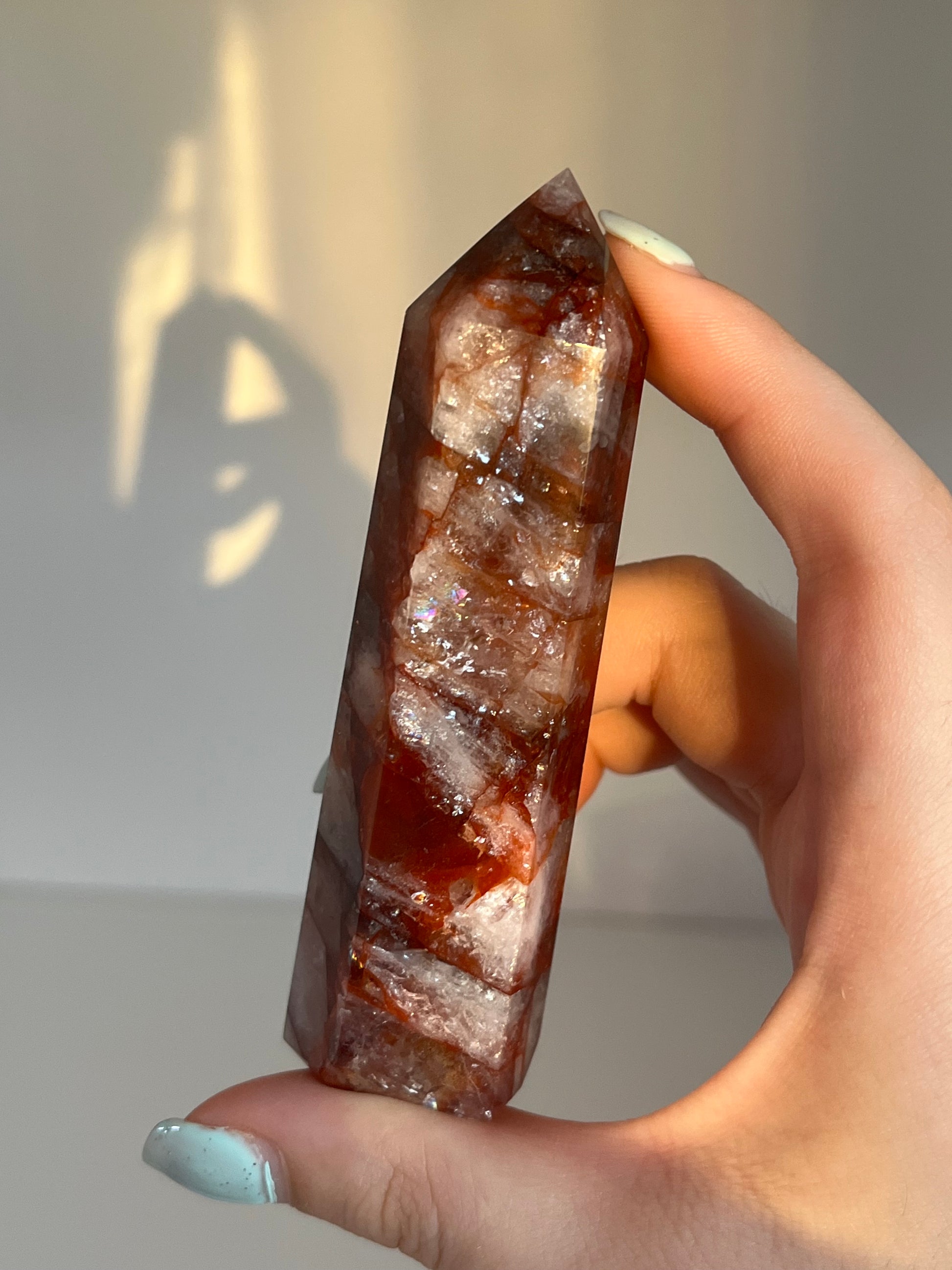 Il quarzo di fuoco è una varietà di quarzo caratterizzata dalla presenza di inclusioni di ematite. Si ritiene stimoli energia, forza e coraggio. Aiuta a connetterci con la terra fornendo stabilità e radicamento